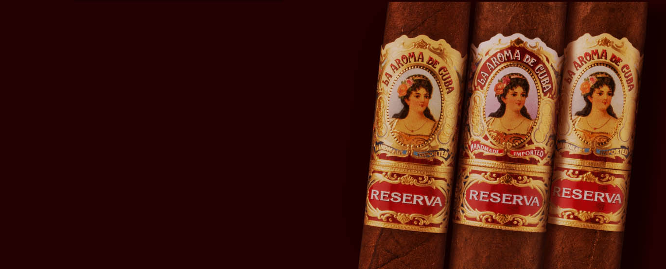 La Aroma de Cuba Reserva cigars are the highly anticipated follow up to the heralded #2 Cigar of the Year, La Aroma de Cuba 'Mi Amor' Reserva. These superb cigars are expertly rolled in Nicaragua at Pepin Garcia's My Father factory. Each Mi Amor Reserva is covered by a beautiful coal black Cuban-seed Mexican Oscuro wrapper. This sultry leaf embraces a powerful blend of aged Nicaraguan long-fillers all grown on the Garcia family estates in Estelí, Nicaragua. This top-quality ensemble of premium tobacco provides a full-bodied smoke laced with rich, multi-layered notes of anise, earth, leather, espresso, and hints of black cherry. Order a box of 24 from cigars.com today, and let us fill your humidor with a scrumptious 94-rated blend that joins the rest of the award-winning family of fine La Aroma de Cuba cigars.
